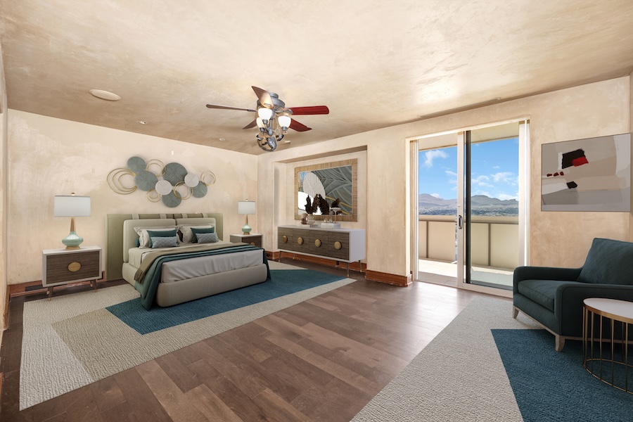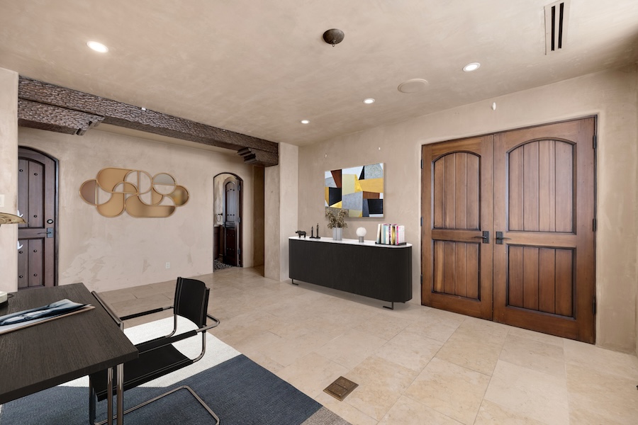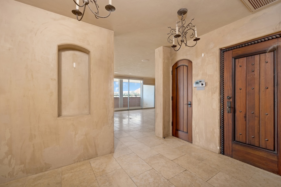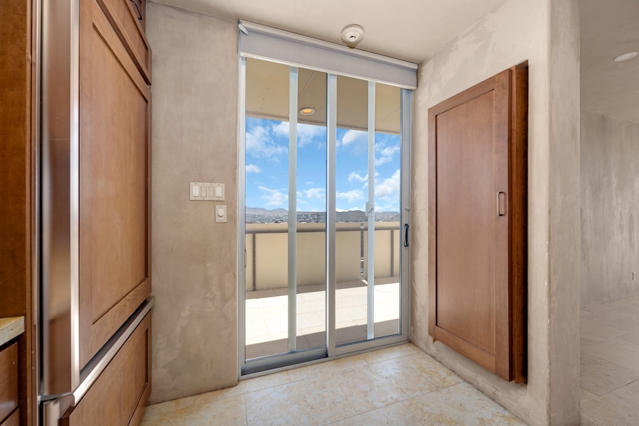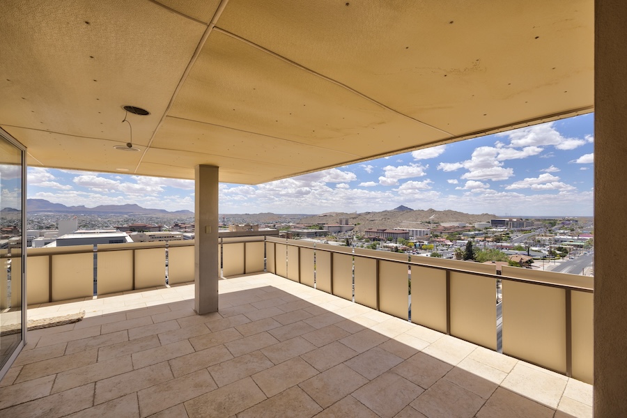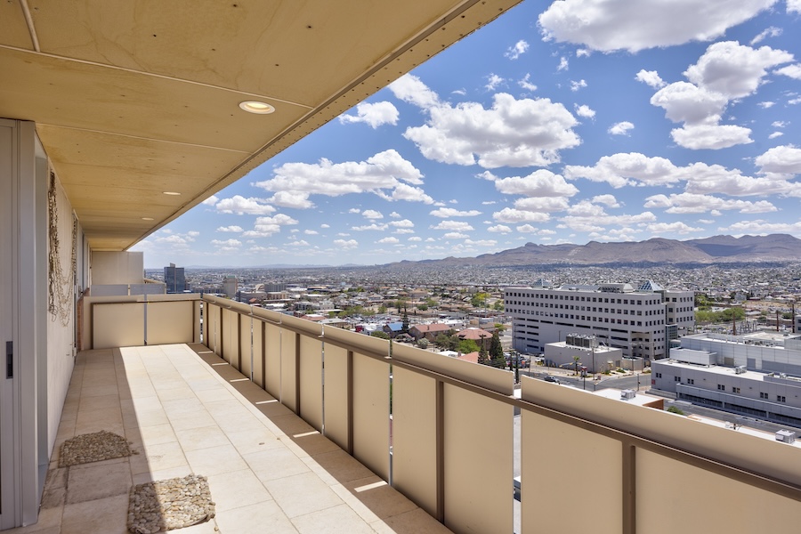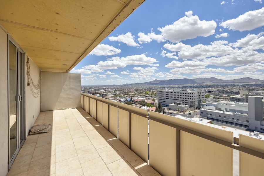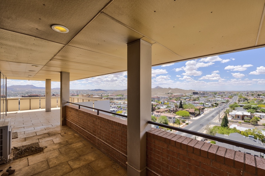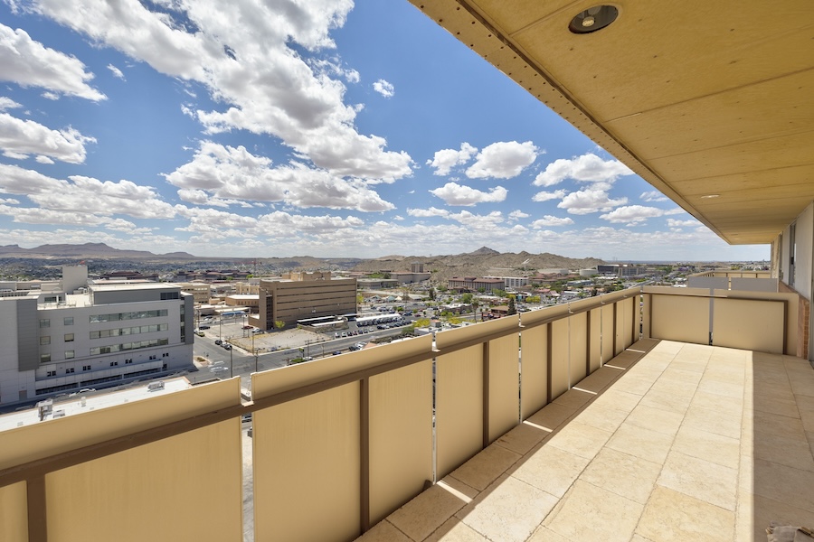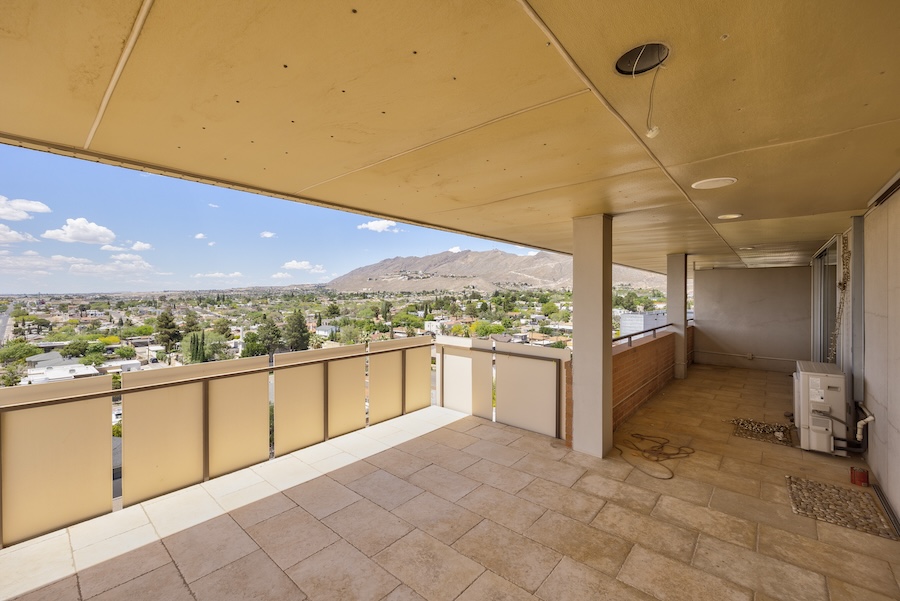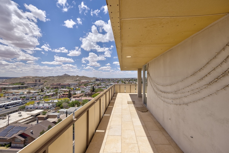Experience luxury living in this stunning 2-bedroom, 1-Office, 2-bath Penthouse condominium in the heart of El Paso. Office could be used as 3rd bedroom. This spacious Penthouse - top-floor residence – with a large wrap around balcony, boasts breathtaking views of the UTEP, Kern area and Mount Cristo Rey. The apartment features elegant Venetian plaster walls throughout, exuding sophistication and style. You can enjoy the convenience of two garage parking spaces, with additional storage space that are deeded to the property. This is upscale urban living at its finest.